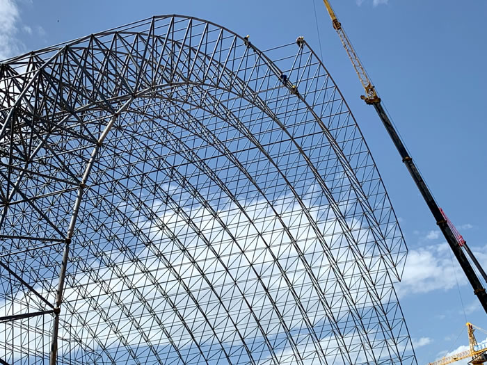 (2)网架加工前应对现场尺寸进行复测,确认无误后方可进行加工、安装;网架制作、运输、安装应遵守《空间网格结构技术规程》JGJ7-2010、《钢网架北海螺栓球节点》JG/T 10-2009、《钢网架北海螺栓球节点用高强度螺栓》 GB/T 16939-2016、《北海钢结构北海工程北海施工规范》 GB50755-2012、《北海钢结构北海工程北海施工质量验收标准》 GB50205-2020。